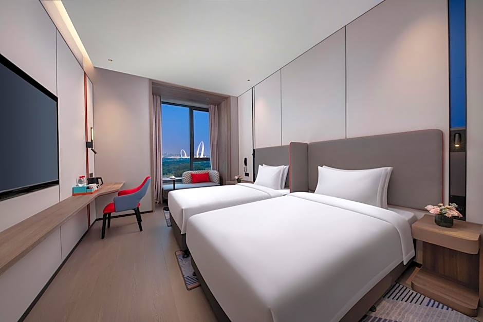 Featuring free toiletries, this double room includes a private bathroom with a walk-in shower, a hairdryer and slippers. The air-conditioned double room features a flat-screen TV, a wardrobe, an electric kettle, a sofa as well as city views. The unit has 2 beds.